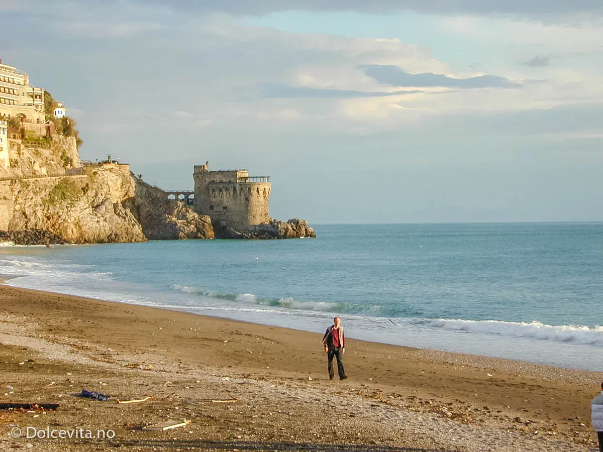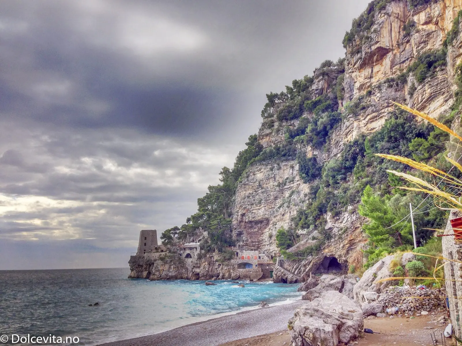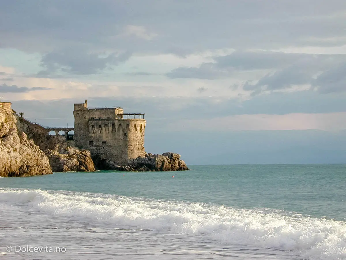 Solskinn. Varme. Vakre strender. Et tårn i gul-beige troner over bukta. Ved siden av: noe som likner inngangen til en enorm hule og en fjellrygg der bussen tuter viltert hver gang den runder. Og på toppen av de frodige fjellsidene ligger små landsbyer. Dette er nesten som et ”Cinque Terre Extra Large”.