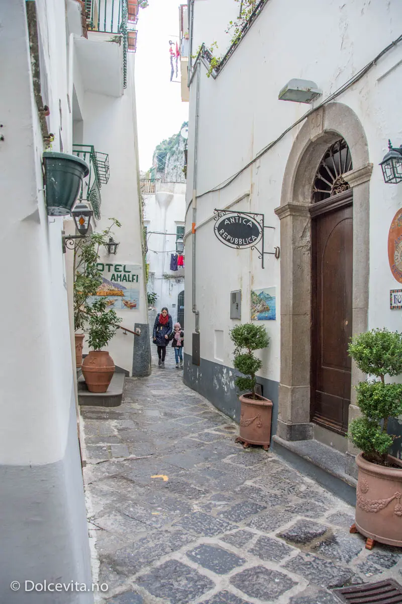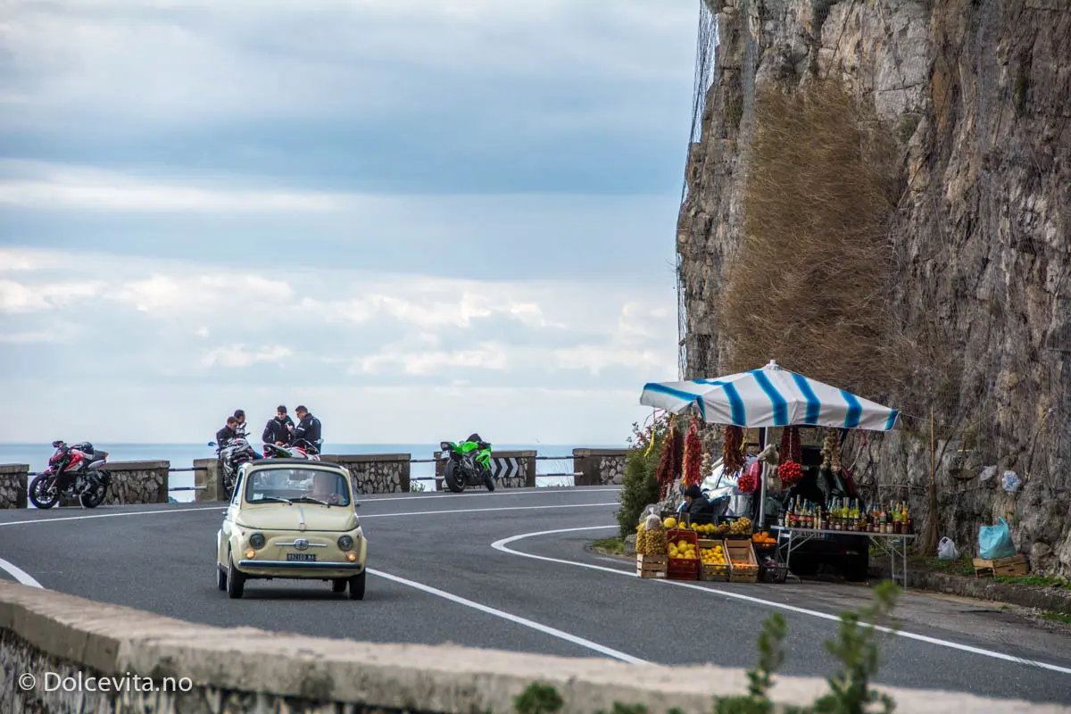 En snøfri dag like over nyttår dro vi Amalfi-halvøya rundt. Det blåste fortsatt, og det var lite folk. Men de samlet seg i vei-skjæringer, trange svinger og… stort sett på de bratteste stedene. Likevel var de midt i sentrum: