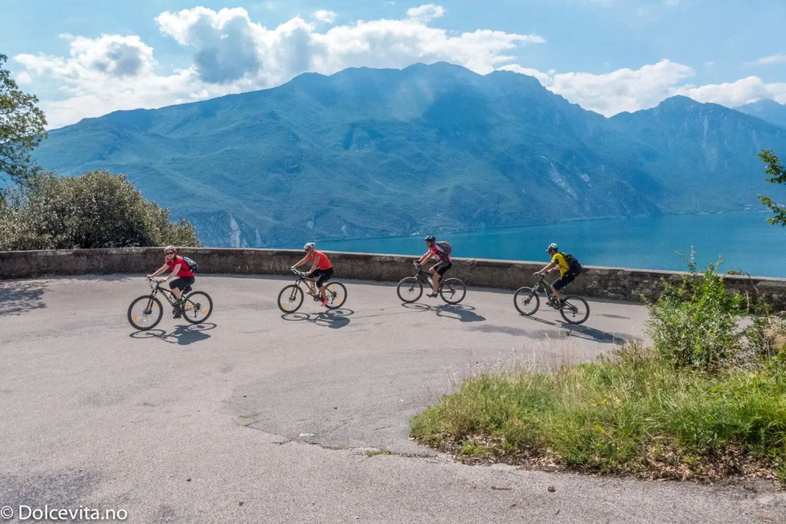 Turen går fra Riva del Garda og bokstavelig talt i fjellveggen sørover. En gang kjørte det visstnok busser her, nå kan bare syklister og turgåere nyte utsikten – utover og rett ned i Gardasjøen.
