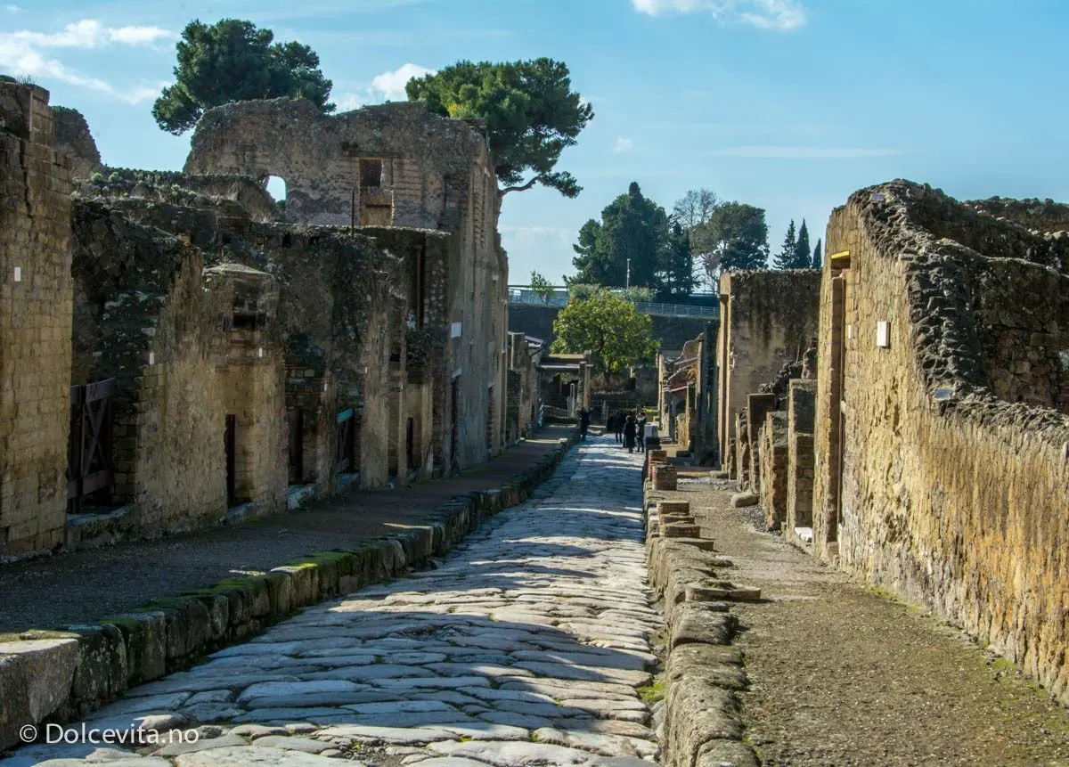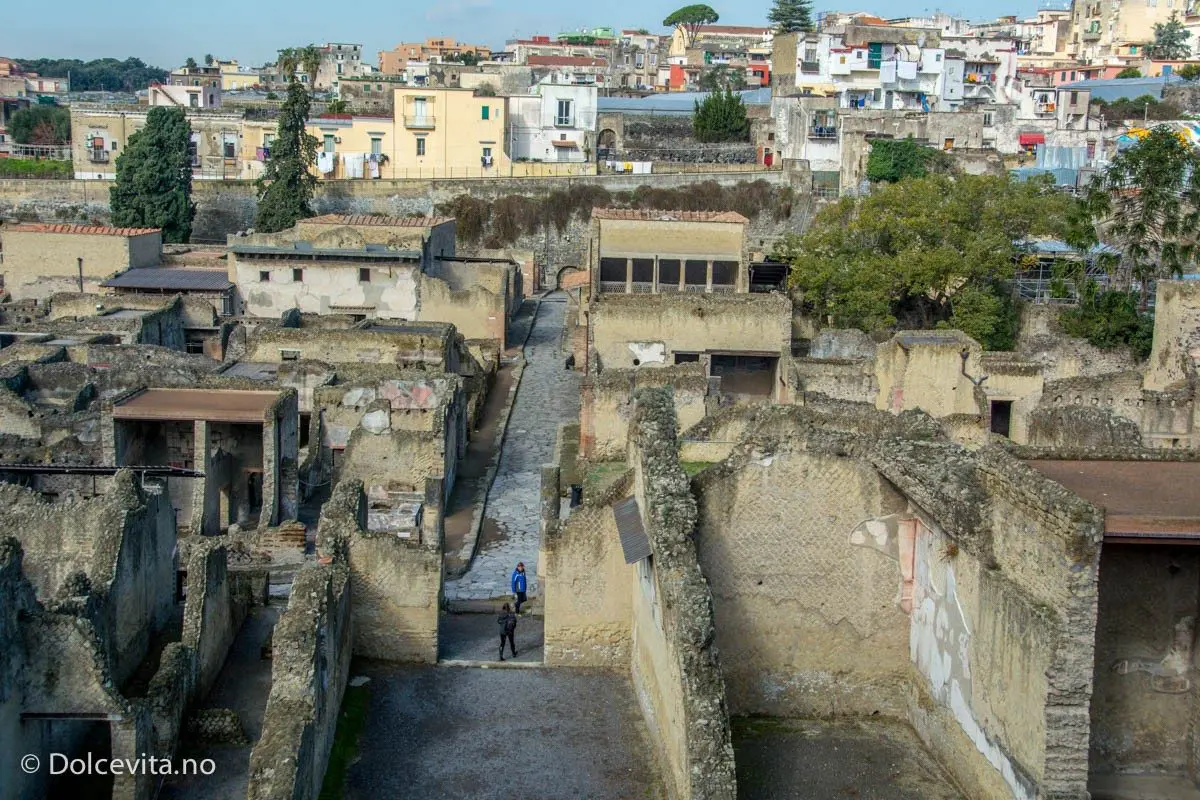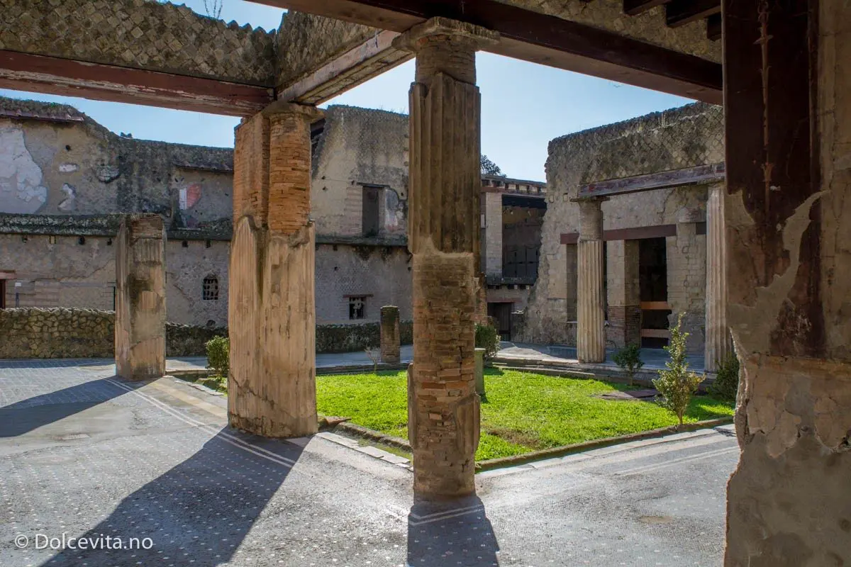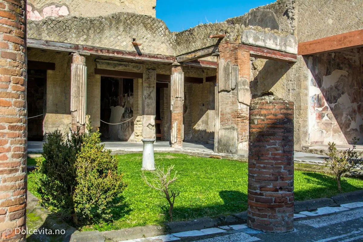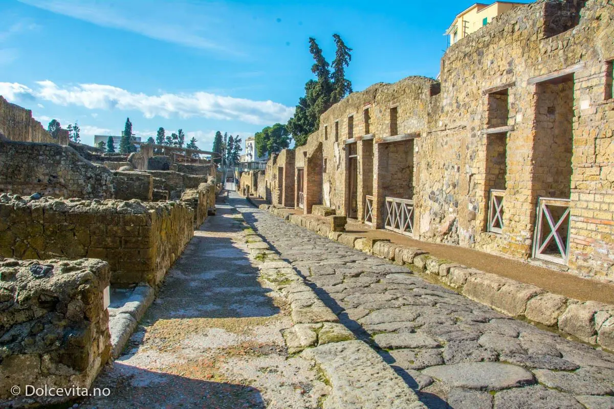 Mens den mer kjente storebroren Pompei er og blir ruiner, finner du her hele hus og godt bevarte rom du kan vandre inn i, og det attpåtil uten stengslene som finnes mange steder i Pompei. Og gater med brostein fra travelt byliv en gang før det bokstavelig talt smalt i år 79.