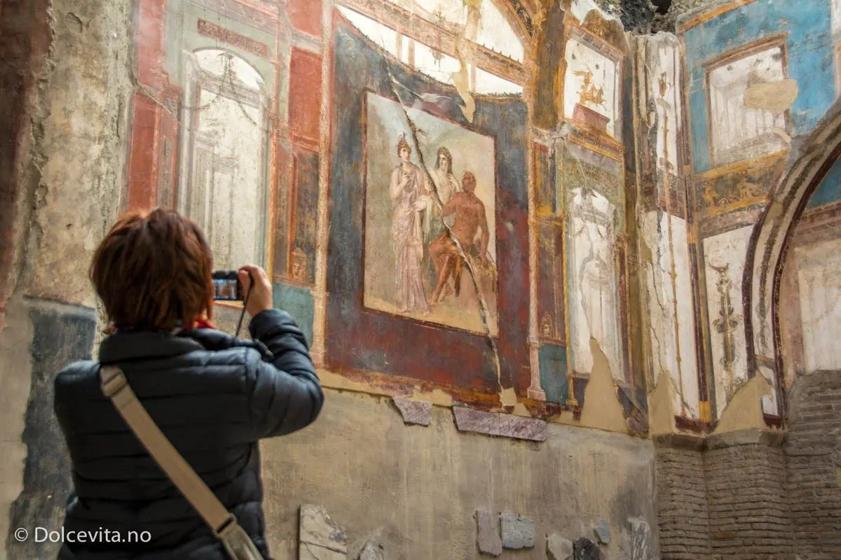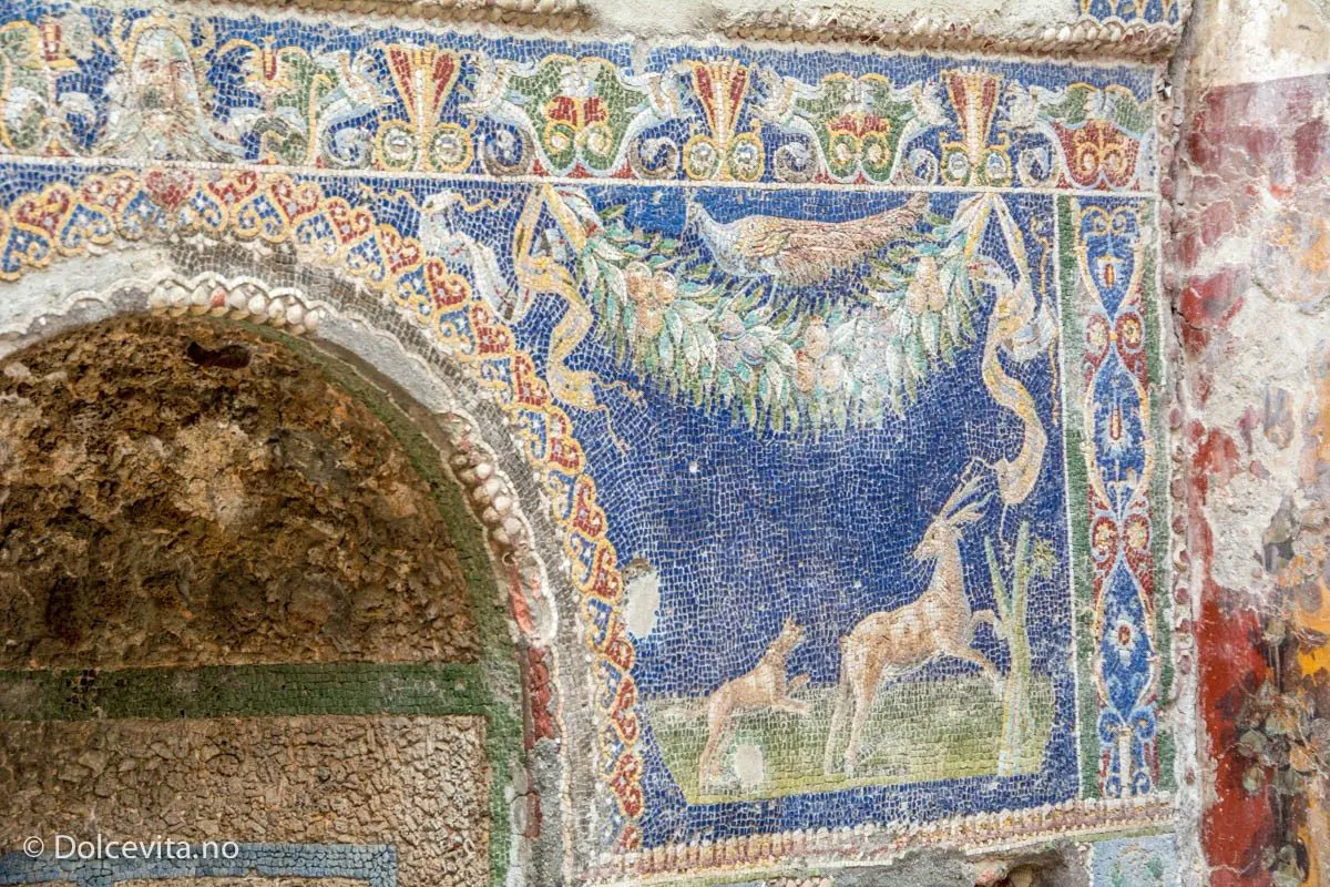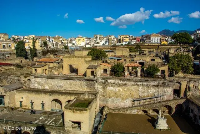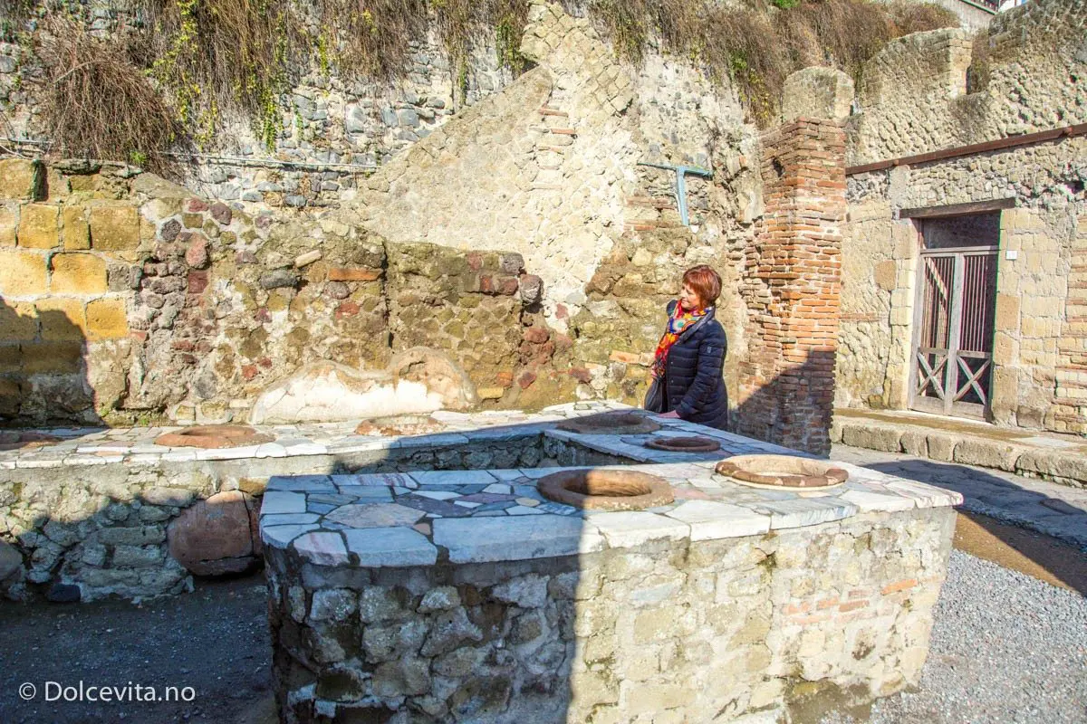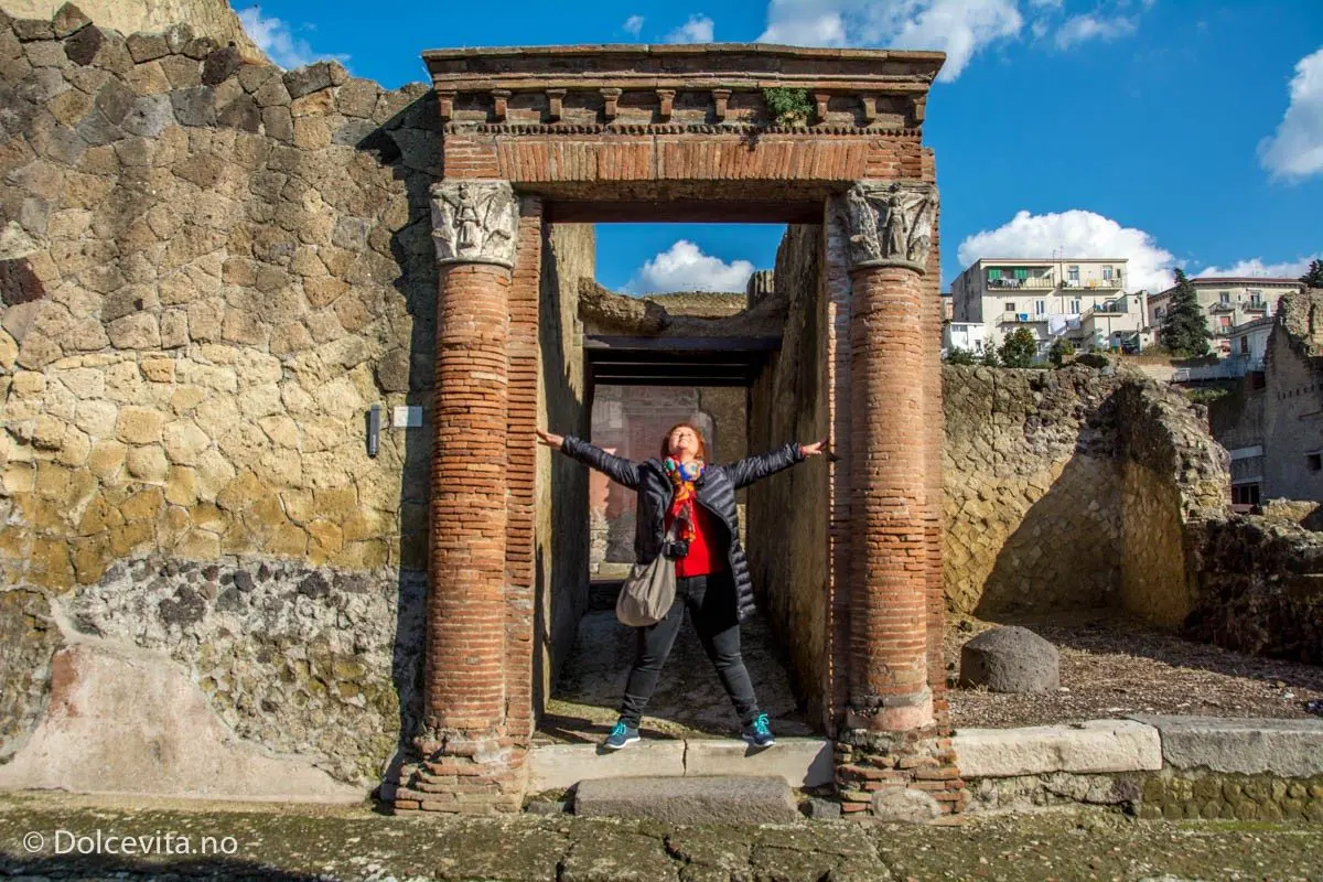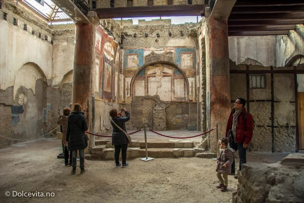 Mens den mer kjente storebroren Pompei er og blir ruiner, finner du her hele hus og godt bevarte rom du kan vandre inn i, og det attpåtil uten stengslene som finnes mange steder i Pompei. Og gater med brostein fra travelt byliv en gang før det bokstavelig talt smalt i år 79.