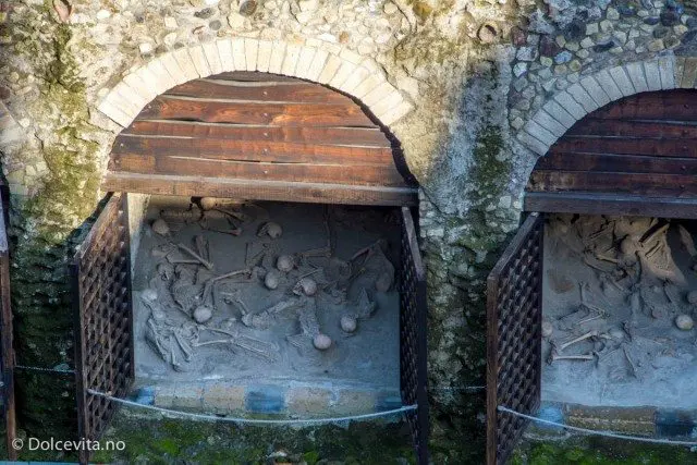 Herculaneum ble begravet i det samme utbruddet som Pompei. Men, mens Pompei langt på vei ble knust under tonn på tonn med stein og aske, ble Herculaneum først bare dekket av et askedryss, mens folk rømte. Man trodde lenge at de bortimot 5000 innbyggerne her hadde overlevd – inntil man grov ut bryggehusene. Et par hundre som hadde samlet seg der for å rømme sjøveien, rakk forhåpentlig aldri å oppleve brannstormen – en såkalt pyroklastisk bølge – som brente alt og begrov byen i aske.