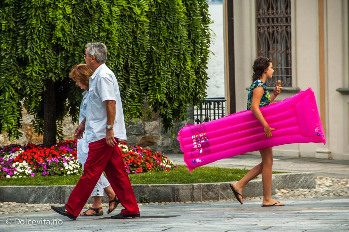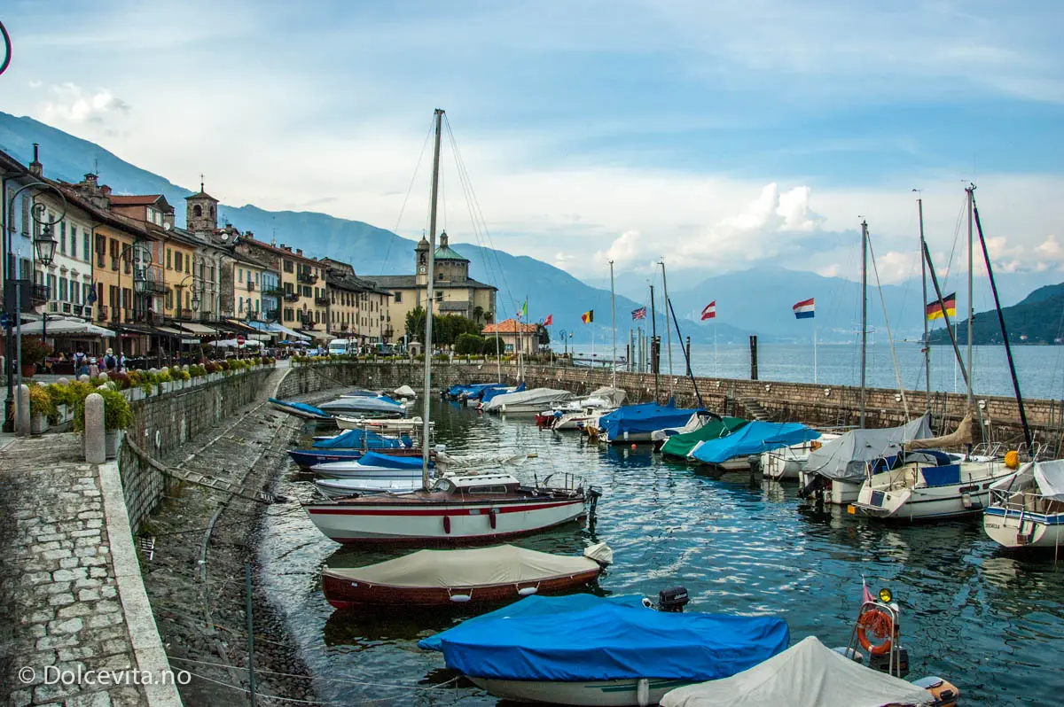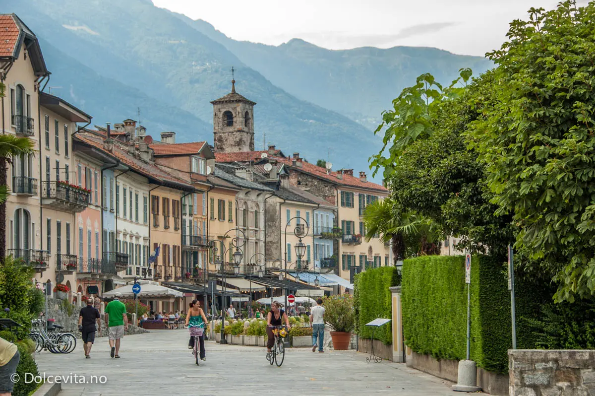 Nede ved sjøen er det mange hyggelige restauranter. Det går også ferge herfra til Locarno i Sveits og Arona lengst sør i sjøen.