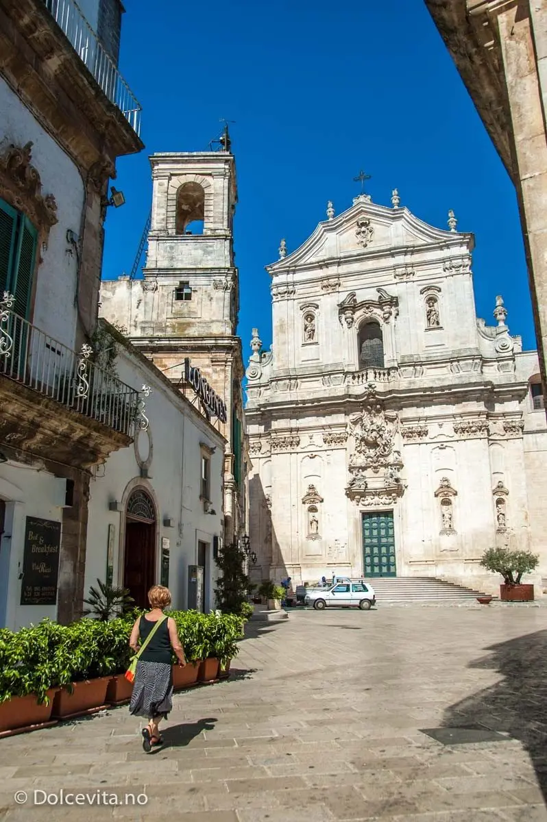Martina Franca er en av de mest barokke byene i Italia, helt lys, overdådig pyntet og et sted man bør ha god plass på minnekortet. Til og med duomoen er lys og levende; denne dagen øver noen ungdommer seg til en konsert med koret. I juli har de også en operafestival, med intime utendørskonserter som hovedsakelig holdes i bakgården til Palazzo Ducale – det gamle grevepalasset. Det helt spesielle er at de bare spiller ukjente verk eller tidlige utgaver av kjente oppsetninger, som Verdis 1857-utgave av ”Simon Boccanegra”.