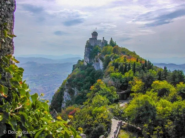 På Monte Titano troner fortsatt Gamleborgen. Den er som tatt ut av en tegneserie, men det er virkelig nok.