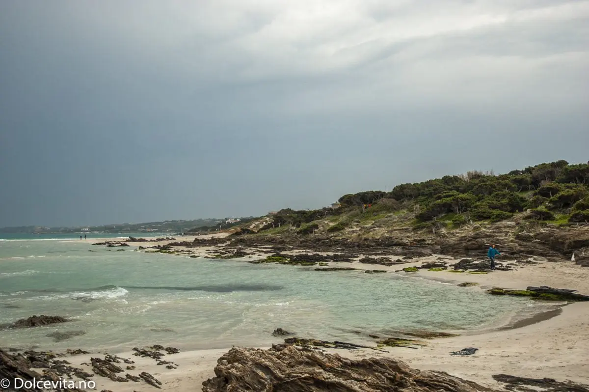 Stedet er kjent for kanskje Sardinias mest fotogene utsikt: Lyse strender, lyse og mørke farger i grønt og blått lyser mot det, og på en øy på nordsiden ruver et tårn som har fylt mange filmruter gjennom årene.